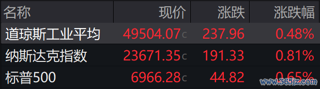 当地时间上周五,美股全线上涨,截至收盘,标普500指数涨0.65%,创历史最高收盘价;纳指涨0.81%,道指涨0.48%,同样刷新收盘纪录。